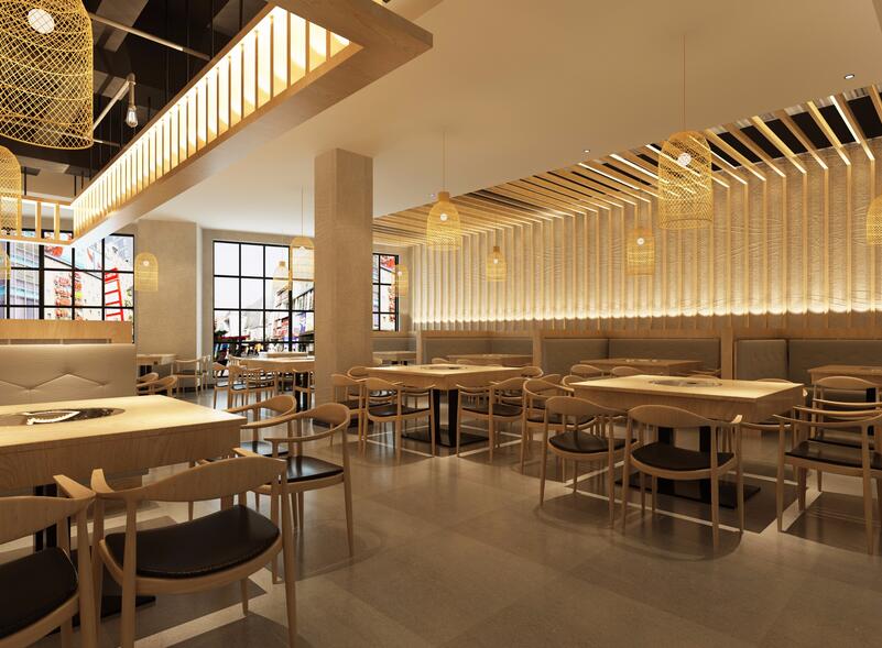 光柏士餐饮照明的业务员/设计师需要也客户沟通了解更多的情况:如重庆东海江滨火锅城的天花布置图(天花有没有吊顶,吊顶的区域邓情况,需要客户提供现场的情况,了解客户改造的重点等等情况;然后进行灯光设计。