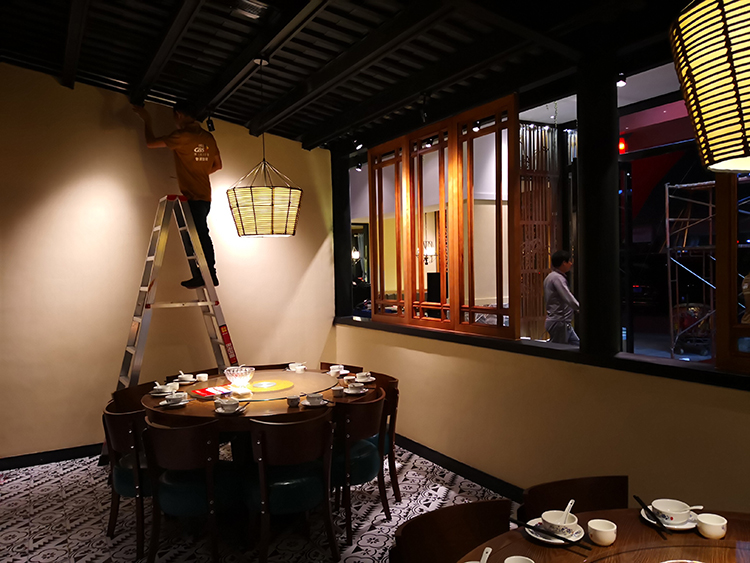 光柏士餐饮照明灯光设计--江门麻园湘溪店包间灯光效果--现场灯光调节