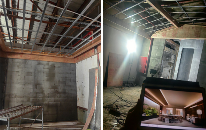 沙溪和平俚餐厅--施工现场灯光细节对接